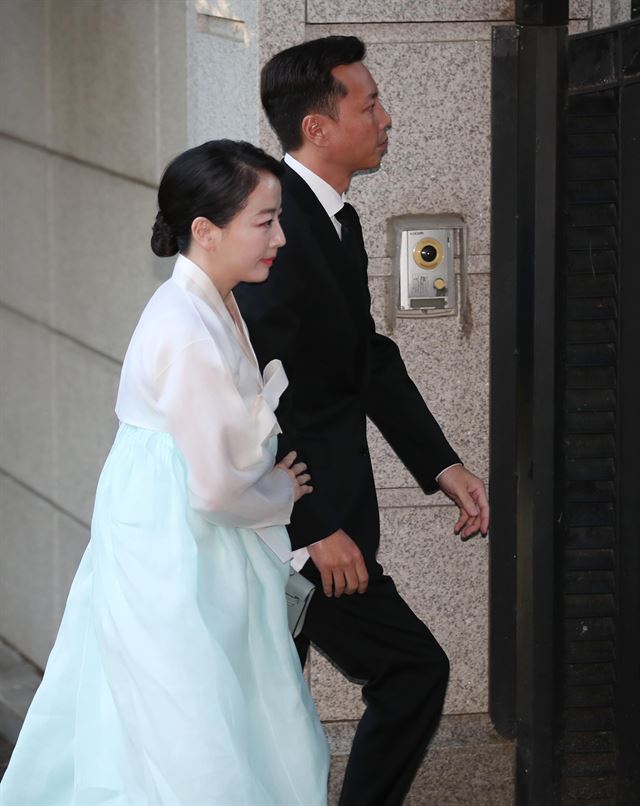 노현정 현대家 결혼식 참석 핑크빛 한복 자태 Tf사진관