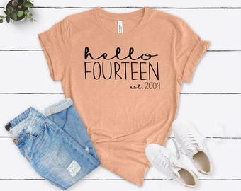 Hello Fourteen Est 2009 Birthday Shirt 14th Bday Shirt 14th Etsy