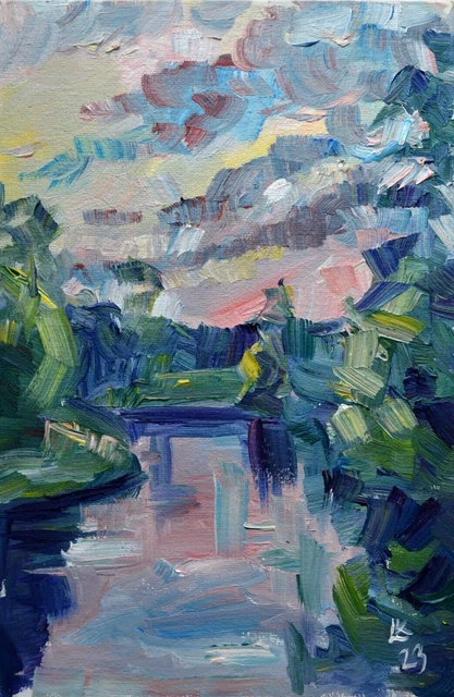 River Sunset Landscape Original Oil Nature Painting Modern Impressionism 89 45 Picclick Au