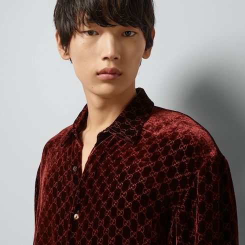 Camisa Extragrande De Terciopelo Con Gg En Color Vino Gucci Es